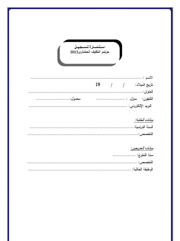 نموذج استمارة تسجيل Doc