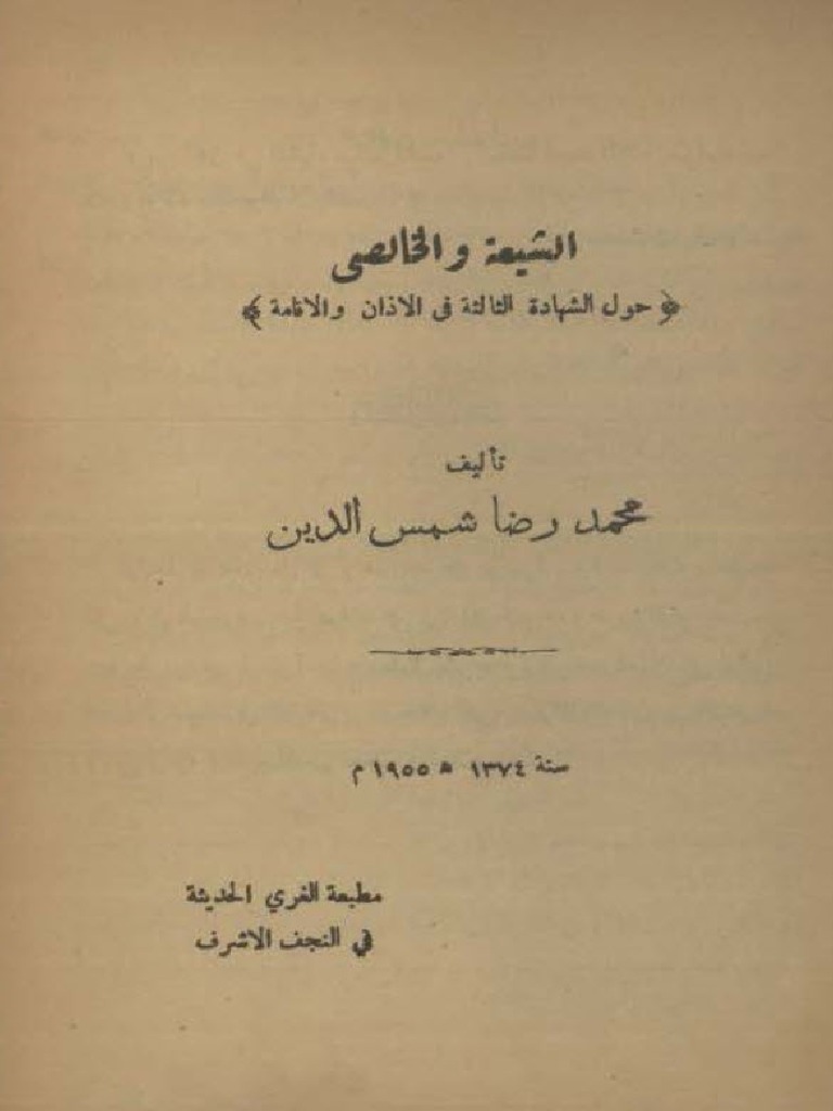 الشيعة و الخالصي حول الشهادة الثالثة في الأذان و الإقامة محمد رضا شمس الدين