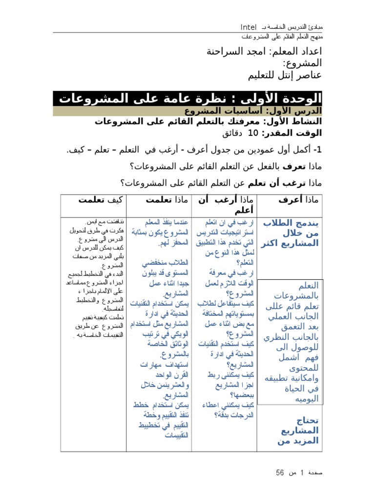 التعلم القائم على المشروعات Doc