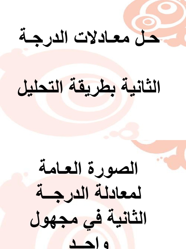 7 حل معادلات الدرجـة الثانية بطريقة التحليل