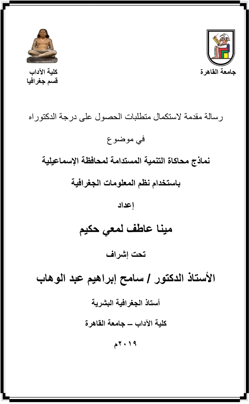 نماذج محاكاة التنمية المستدامة لمحافظة الاسماعيلية باستخدام نظم المعلومات الجغرافية رسالة دكتوراه مينا عاطف لمعي Pdf