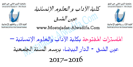 الماسترات المفتوحة بكلية الآداب والعلوم الإنسانية عين الشق الدار البيضاء برسم السنة الجامعية 2016 2017