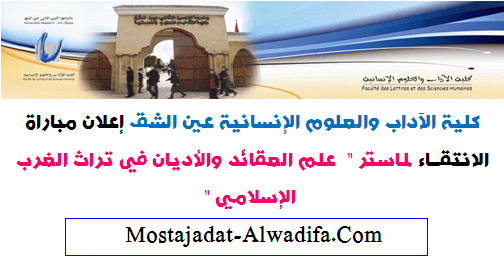 كلية الآداب والعلوم الإنسانية عين الشق إعلان مباراة الانتقاء لماستر علم العقائد والأديان في تراث الغرب الإسلامي