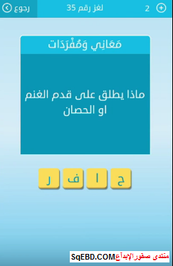جواب لغز ماذا يطلق على قدم الغنم او الحصان من لعبة رشفة لغز رقم 35 للمجموعة الرابعة صقور الإبدآع