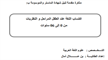 اكتساب اللغة عند الطفل المراحل و النظريات من 0 إلى 06 سنوات Pdf