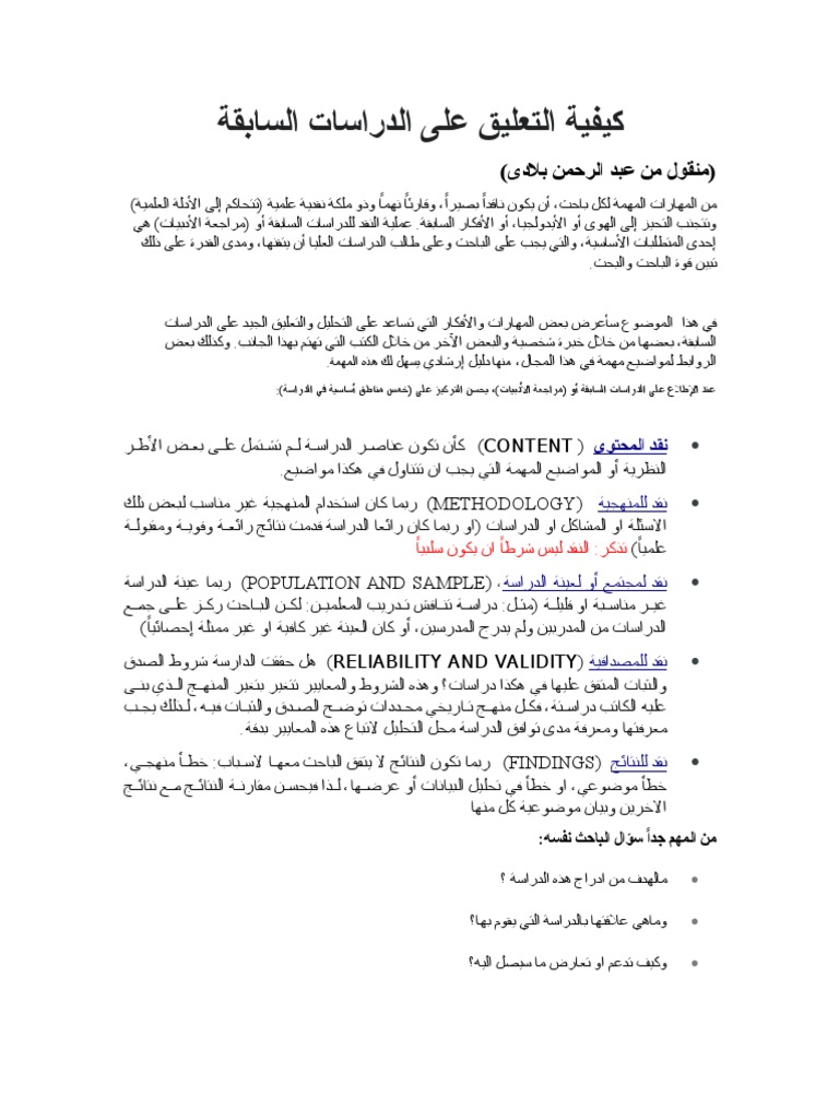 التعقيب علي الدراسات السابقة موقع مكتبتك